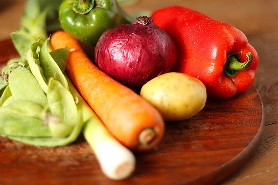 Por outro lado gosto muito de misturar um monte de legumes com coxas e sobrecoxas, colocar dentro de uma forma e assar. Um prato único bem fácil de preparar.