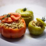 Se necessário tire um pouco da polpa da abóbora, coloque o couscous e finalize com folhas de coentro, gergelim e uma porção generosa de um bom azeite.